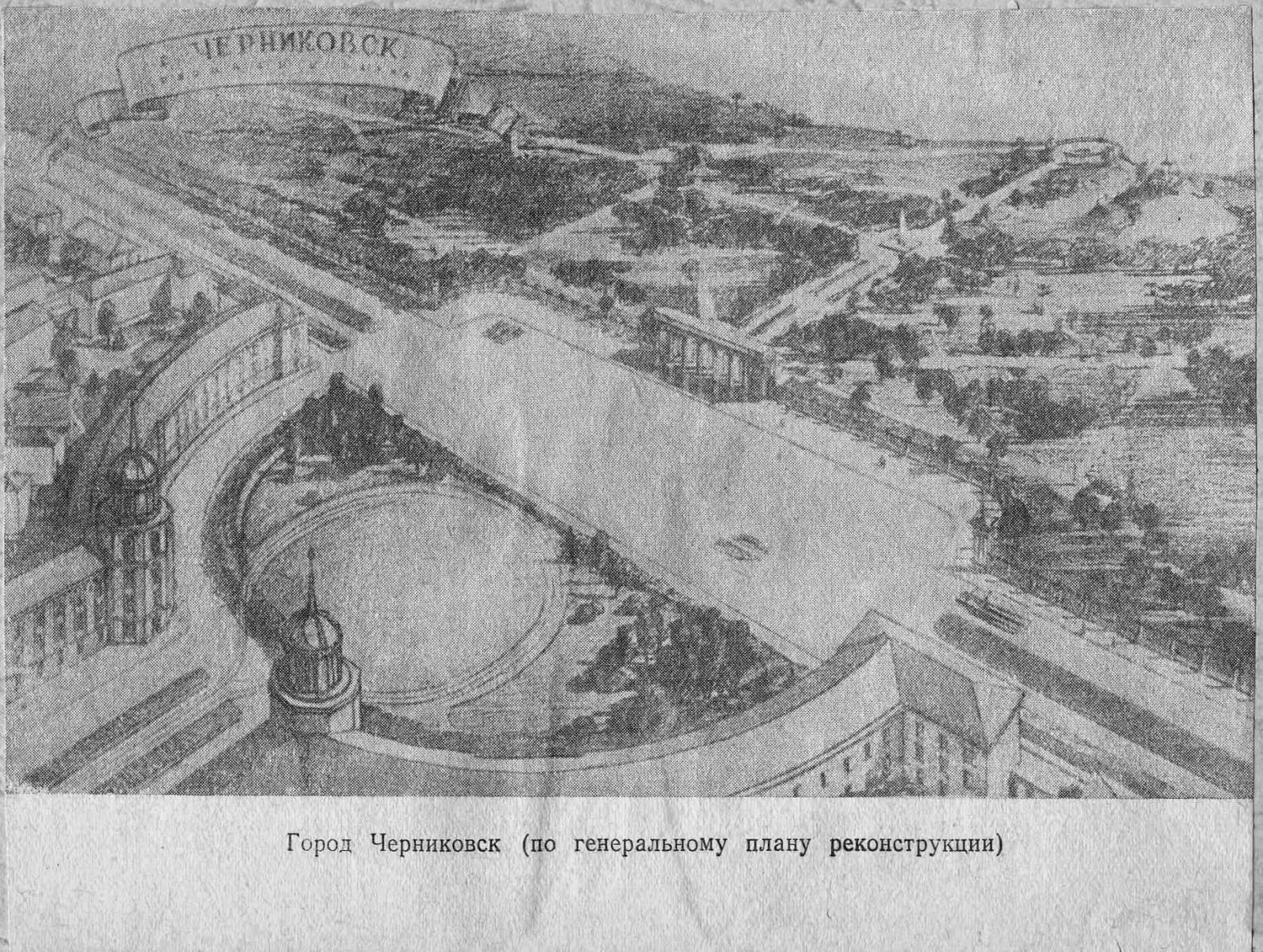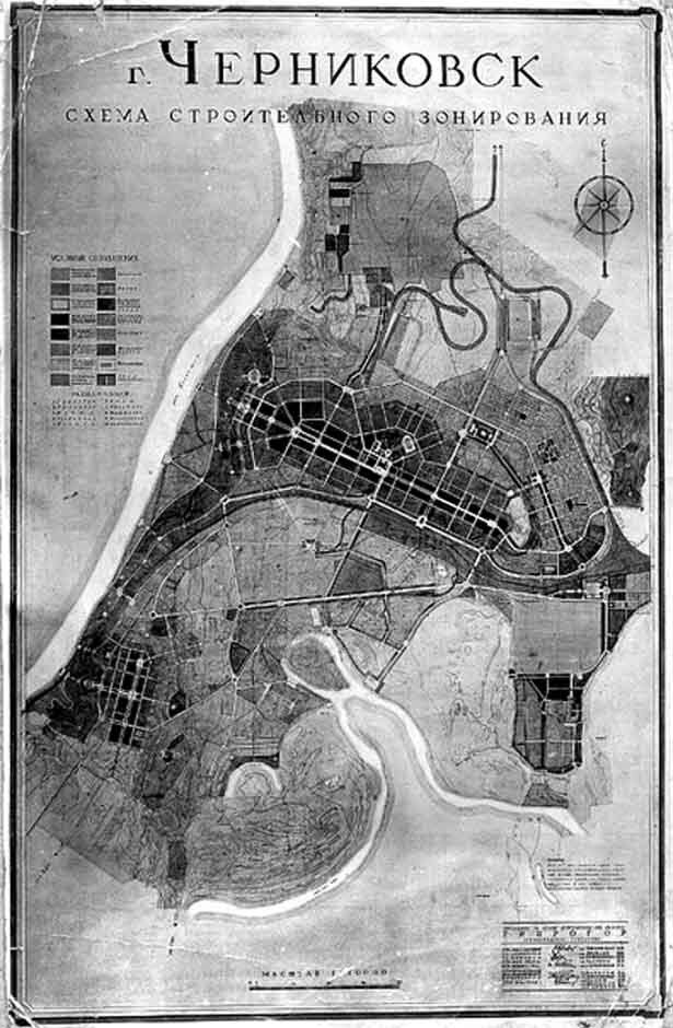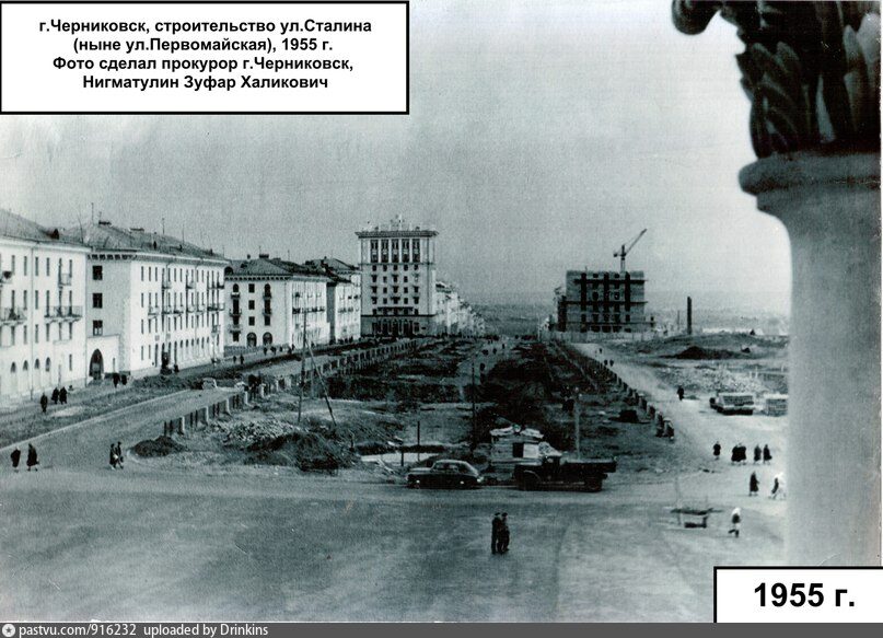 Родилась идея стержневой улицы, проходящей через весь город. Такой улицей стала улица Сталина, в последствии улица Первомайская. Обозначена она была на свободном от построек месте, поэтому можно было планировать геометрически правильный город. С высоты птичьего полета можно увидеть, что улицы и дома Черниковски спроектированы в форме солнца.
